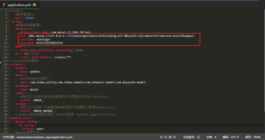 url: jdbc:mysql://数据库地址:3306/数据库名称?characterEncoding=utf-8&useSSL=false&serverTimezone=Asia/Shanghai
