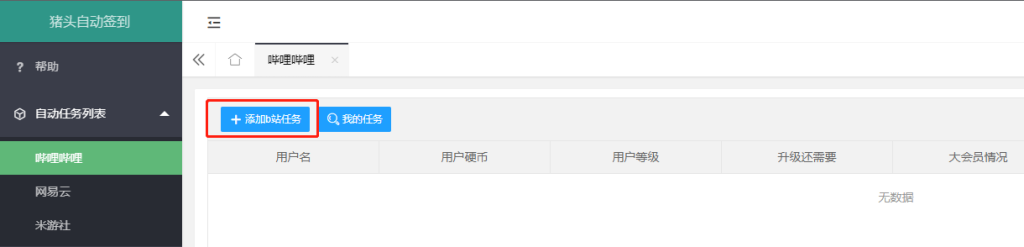 我们需要先注册一个账户,然后我们按需添加我们想要签到的账户就行了,目前支持了