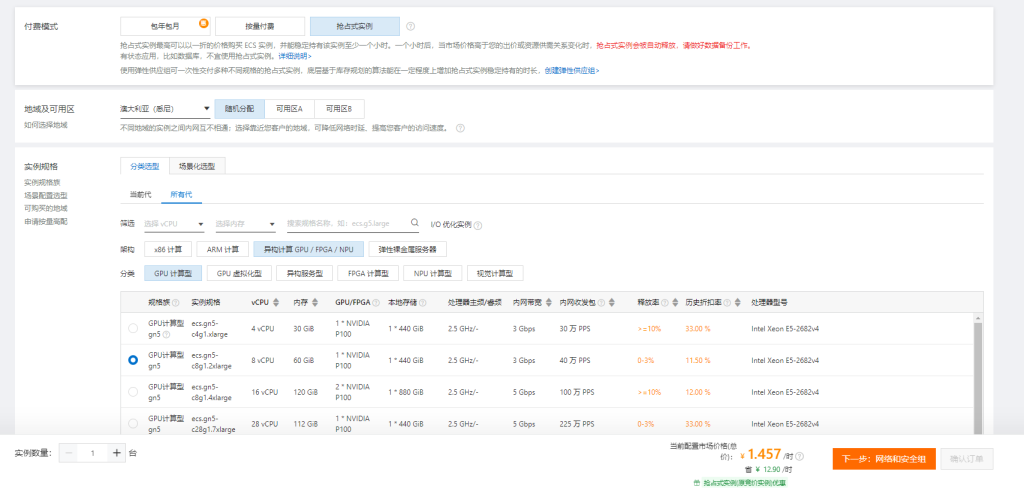 我们这里选择澳大利亚的服务器,里面有一块GPU,目测应该够了