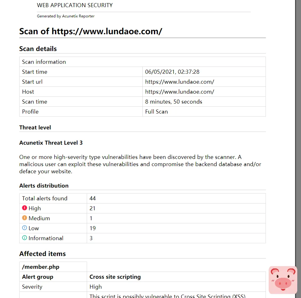 大概报告有20多页,就不发出来了。当然你如果有其他需求,还可以生成其他安全标准的报告或者专门的扫描报告