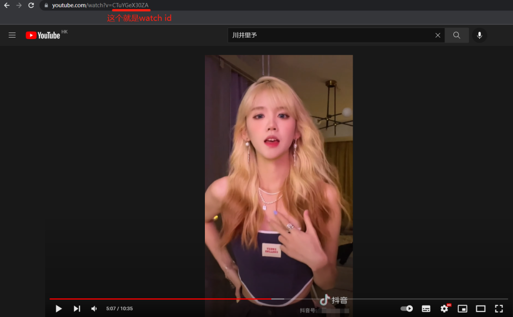 然后如果你已经有ngrok authtoken了则输入n,然后输入youtube的watch id,譬如我们在youtube上找了一个川井里予的