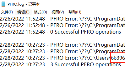 我们这里在自己的电脑中进行测试,打开C:/Windows/PFRO.log,可以看到我的用户名是66396