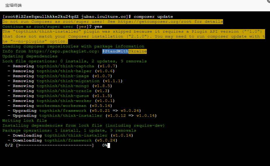 由于是thinkphp框架的源码,因此我们这里需要使用终端中的composer install来安装
