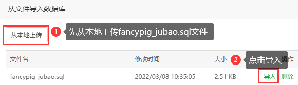 从本地上传fancypig_jubao.sql文件,然后点击导入