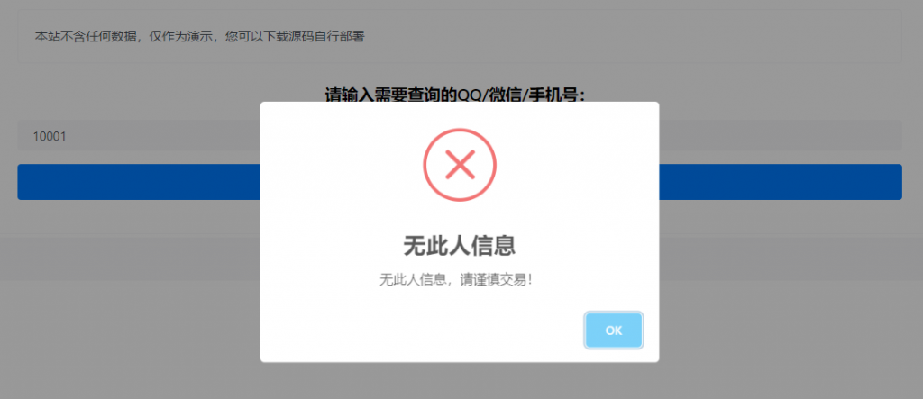 您可以在前台搜索到疑似诈骗用户的资料,支持QQ/微信/手机号,包含诈骗经过和截图资料
