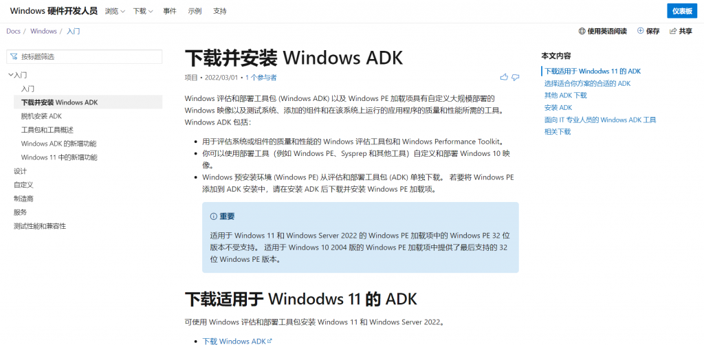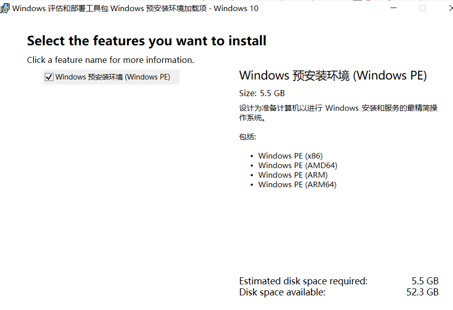 首先,需要去Microsoft官网下载适合自己需求的ADK(下载地址:https://docs.microsoft.com/zh-cn/windows-hardware/get-started/adk-install)