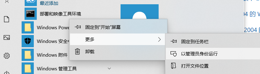 按windows键,找到部署和映像工具环境(Deployment and Imaging Tools Environment),然后以管理员身份运行