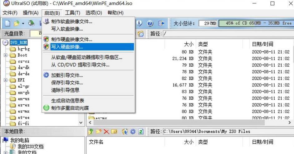 在文件栏中选择打开按钮找到之前做好的ISO文件,插入u盘,然后进入启动栏选择写入硬盘映像