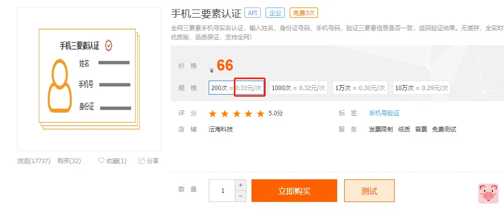 通常企业、机构使用实名三要素来验证一个人的身份是否真实,可以通过企业的接口进行验证(但是通常这种接口是按量付费的),比如京东万象的开发者接口(我们可以看到0.33元/次,价格还是不低的)