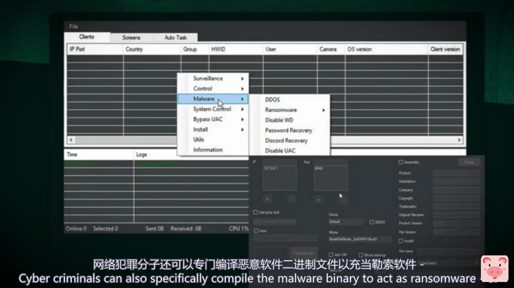 研究人员在一篇博文中写道:“Borat RAT 为威胁参与者 (TA) 提供了一个面板来执行木马(RAT)活动,并且还可以选择编译恶意软件二进制文件以对受害者的机器执行 DDoS 和勒索软件攻击” ,并指出该恶意软件正在出售给黑客。