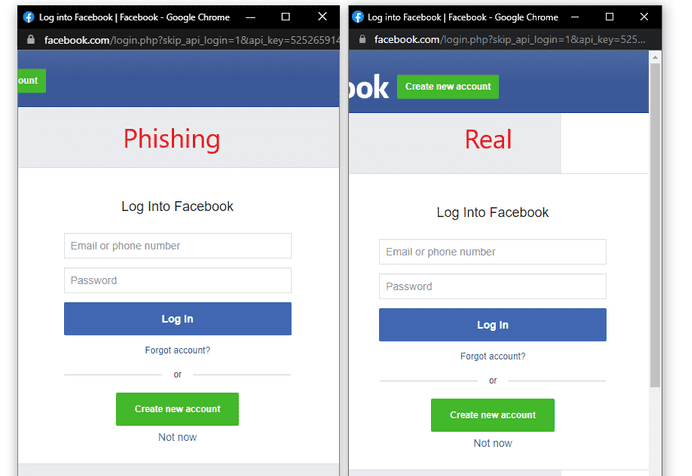 对我们来说幸运的是,使用基本的 HTML/CSS 复制整个窗口设计非常简单。将窗口设计与指向托管网络钓鱼页面的恶意服务器的 iframe 结合起来,基本上无法区分。下图显示了假窗口与真实窗口的比较。很少有人会注意到两者之间的细微差别。
