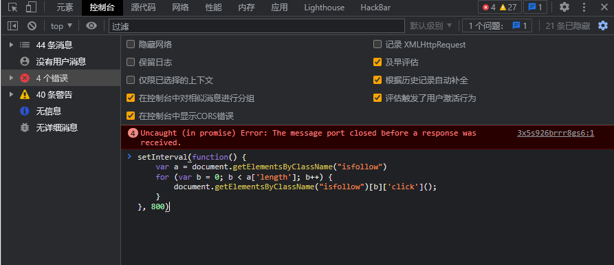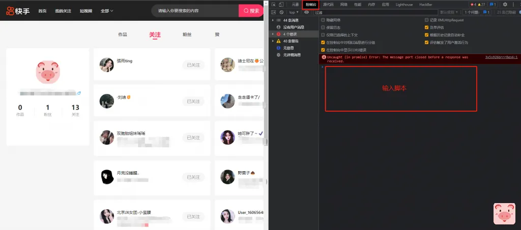 现在我们按F12打开开发者工具,右侧控制台,然后在红框部分输入脚本