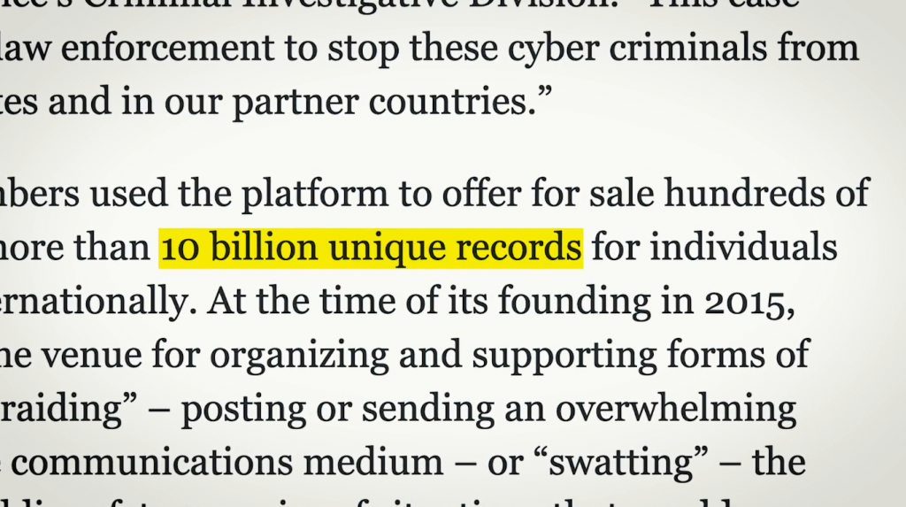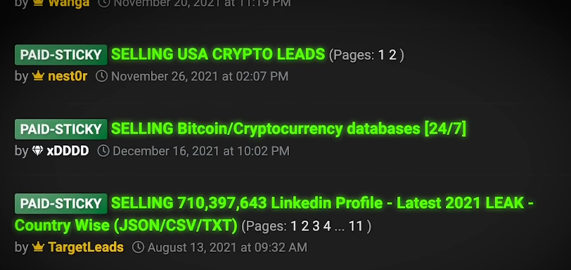 特别是他们的“泄密市场”——用户以数千美元的价格出售包含个人信息的黑客数据库。