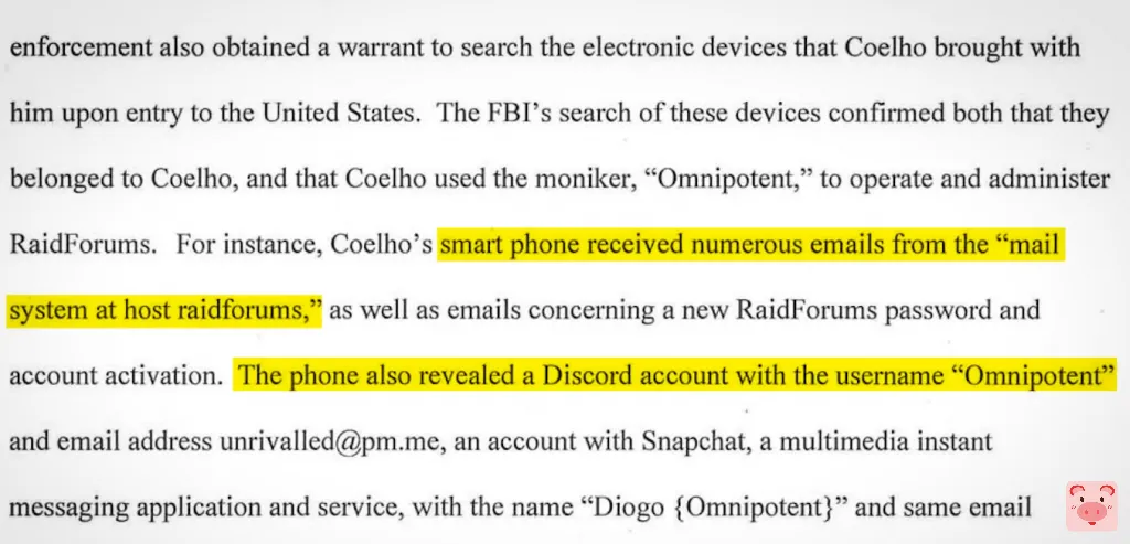 根据法庭文件,“他的智能手机收到了来自 raidforums 邮件系统的大量电子邮件”,“手机还显示了一个用户名为 Omnipotent 的Discord账户”。现在出现了糟糕的操作安全,但这简直令人尴尬——而且情况变得更糟。