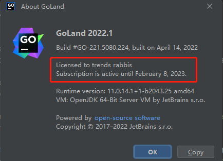 GoLand 2022.1-X最新专业版激活/破解教程