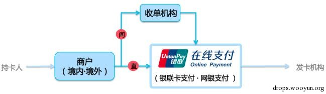 - 商户直联接入:是指商户开发系统直联接入“银联在线支付”网关,“银联在线支付”网关引导持卡人完成支付的形式。这种情况下,交易不经过收单机构的收单平台。