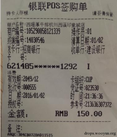 - 客户刷卡消费后,需要在签购单上签字,查看本次消费的签购单如下图