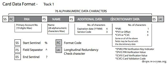 银行卡的磁条包括三个磁道(Track)信息,如下