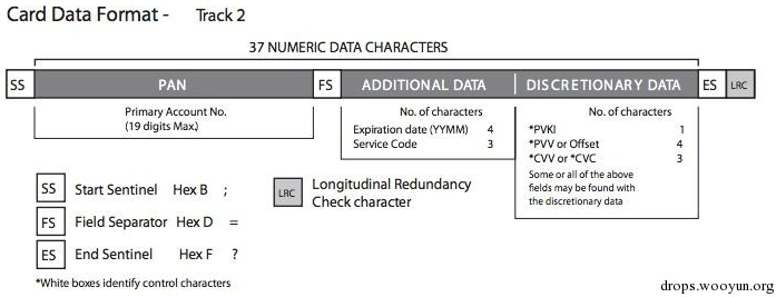 - 说明:磁道2的信息与磁道1的信息很多都一致,不过磁道2信息都为数字,其中与磁道1不同的信息有如下内容: