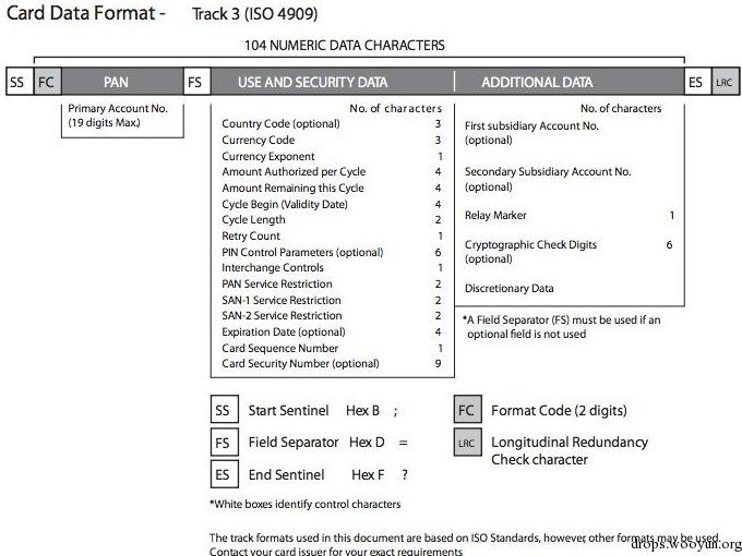 金融类的卡片遵循ISO/IEC 7813标准,不同的卡组织可能稍微有差异。
