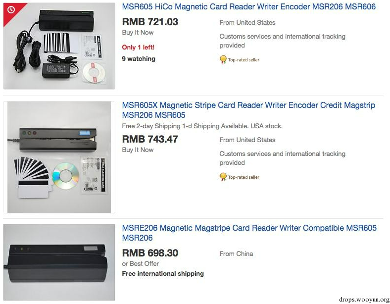 在eBay或Amazon上搜索MSR等关键字可以搜索到很多这种读卡设备,如图