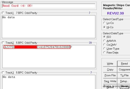 对于纯磁条卡,我们将读到的数据全部写到一张空白的卡里,即复制出与原卡一模一样的卡,且可在ATM机、POS机等处正常使用。