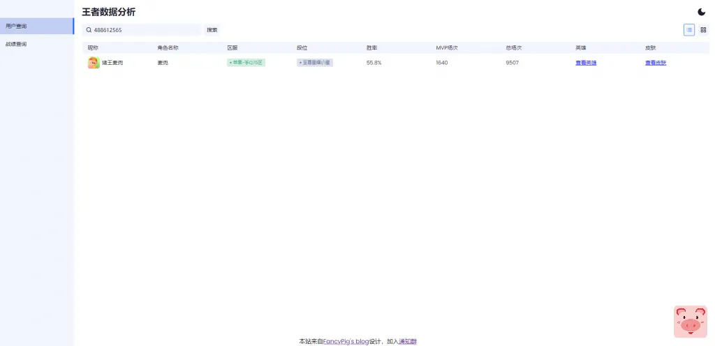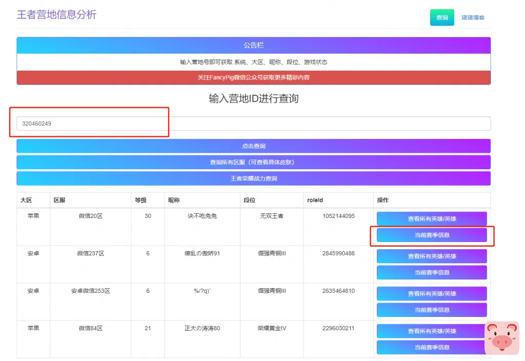 譬如,我们这里想看看游戏里叫猪猪侠的营地ID,点击查询