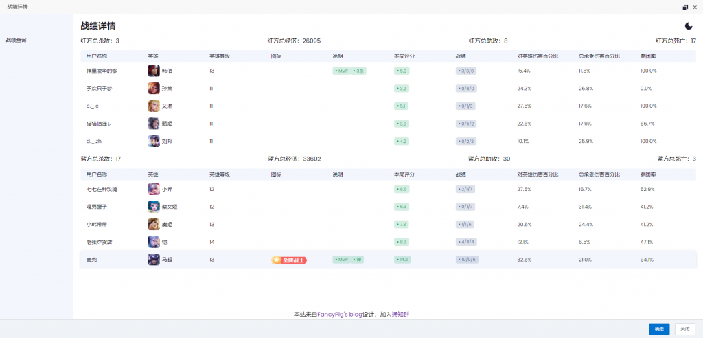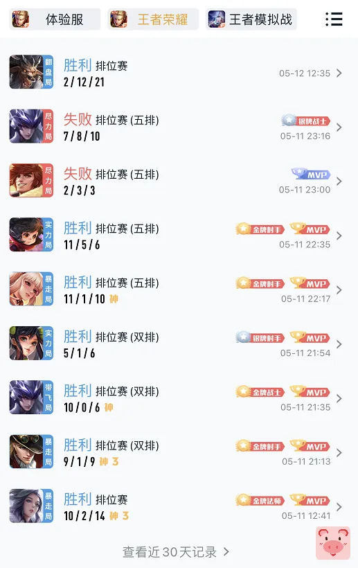 王者荣耀战绩