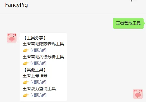 在猪猪安全公众号上输入王者营地工具