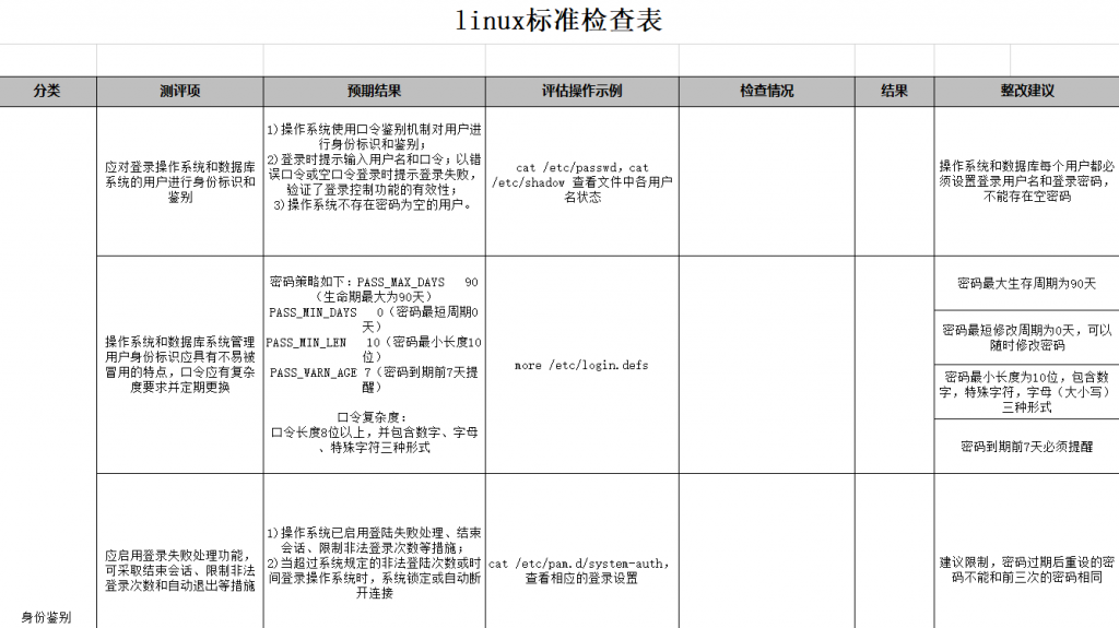 我们可以参考下面的表对应的步骤及命令进行针对性检查,然后提出整改建议