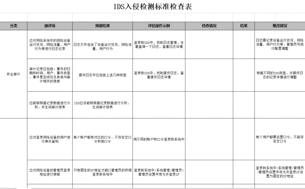 - IDS(入侵检测)完整检查表