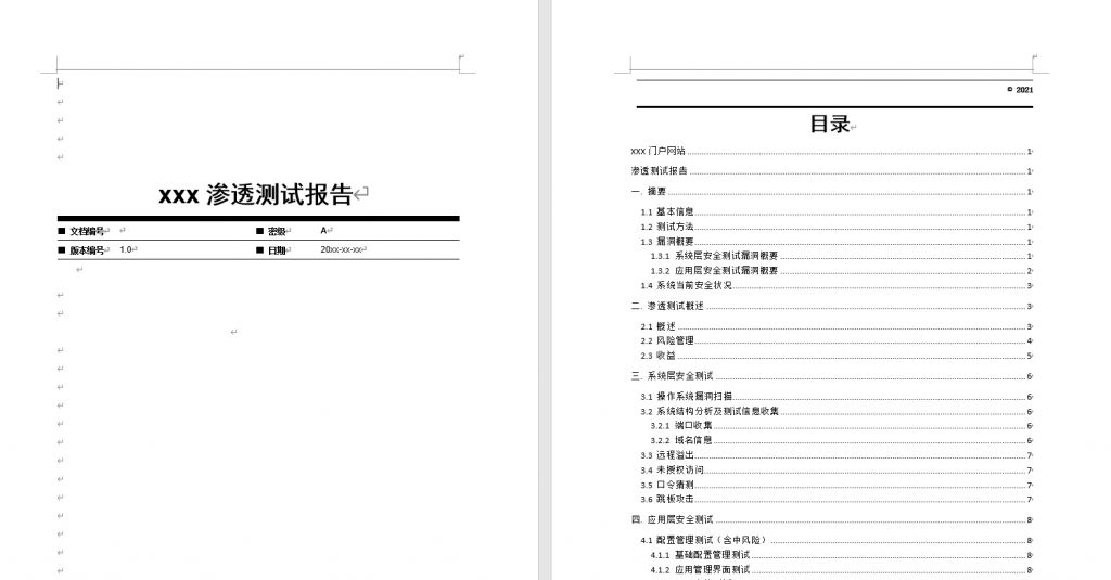 当然,我们也为大家准备了渗透测试报告的一些模板供大家参考,可以用于实战。