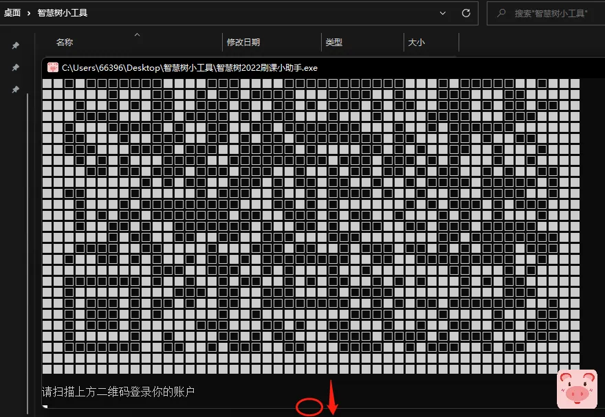您可以直接运行文件,然后二维码可能会比较大,您可以拽住下方的边框下拉,就可以展示整个二维码了
