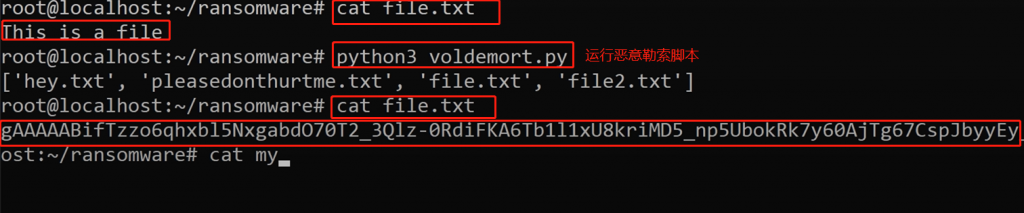 运行脚本前后,文本内容发生了变化,后者被加密了,看不到原有的This is a file的内容了