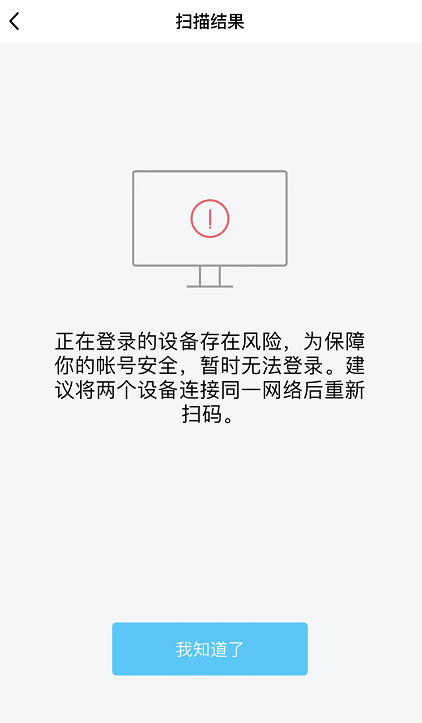 如果直接用手机扫描PC端页面的二维码会提示不在同一网络下,这一点QQ做的还不错