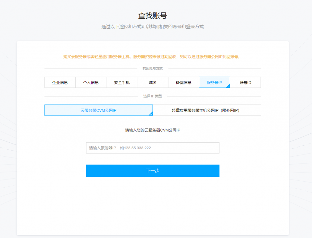 我们用百度搜索IP,找到其中有一个是腾讯云的,用腾讯云找回账户的功能,我们搜索其IP地址