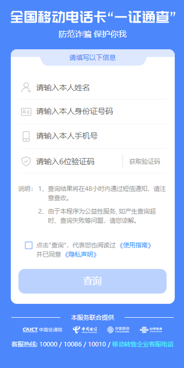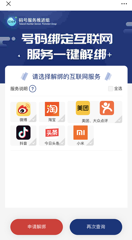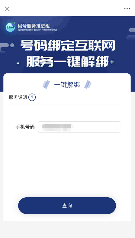 号码绑定“一键查询”服务:提供查询本人持有号码期间注册绑定的互联网账号情况。