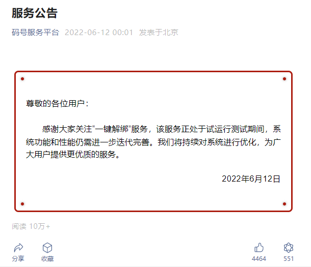 号码绑定“一键解绑”服务:提供解除本人持有号码前(即号码注销重启前)号码注册绑定的互联网账号关联关系(本人持有号码期间绑定的互联网账号不受影响)