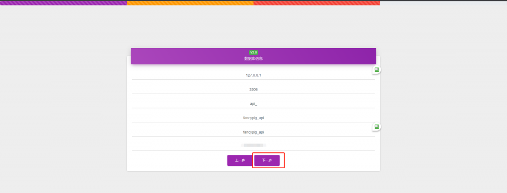 我们这里添加好数据库、数据库账户和密码,点击下一步