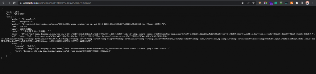 $arr = json_decode($this->curl('https://www.iesdouyin.com/aweme/v1/web/aweme/detail/?aweme_id=' . $id[1]), true);