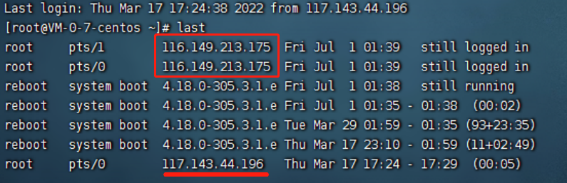 - last 查看上次登录时间