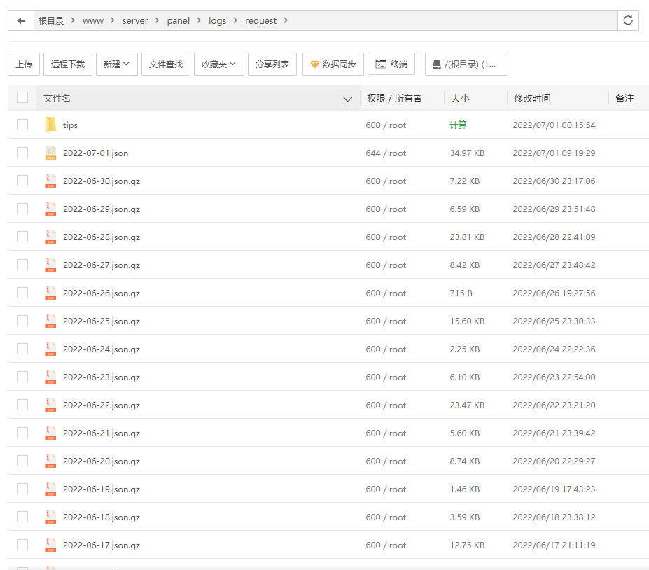 宝塔面板的操作日志虽然进行了清空,但实际上请求访问的日志还会在/www/server/panel/logs/request里保存