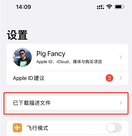 - 设置>已下载描述文件