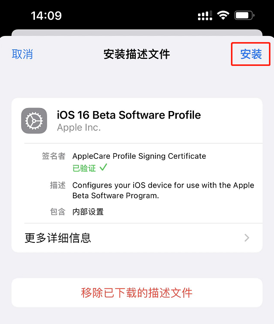 - 下载「描述文件」 https://www.pigsec.cn/ios/ios16