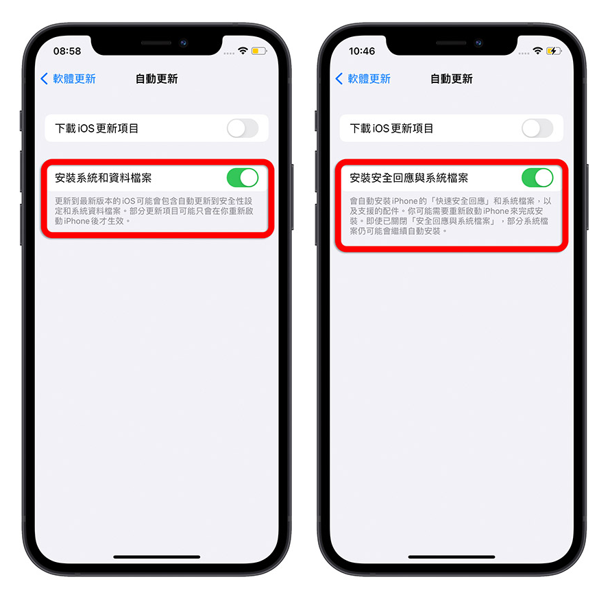 在iOS 16 Beta 3 版本中,你可以设定自动更新时,是否要开启「安装安全回应与系统档案」,如果你有开启的话,就算你没有开启自动更新iOS 的更新项目,有任何与安全性相关的小系统更新档,iOS 也是会自动帮你更新、安装。