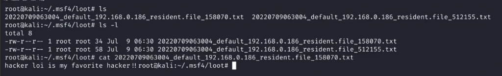 我们可以看到文件已经恢复到了/root/.msf4/loot目录下
